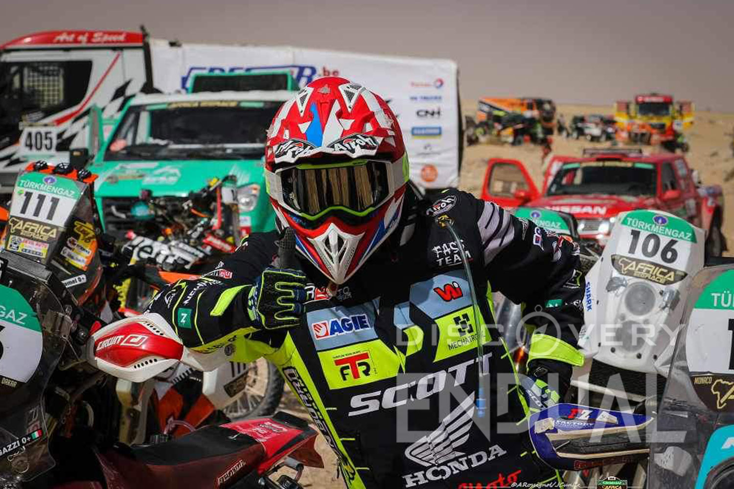 In sella alla sua Honda CRF 450 Rally RS Moto Limited Edition ha Impiegato 5 ore per giungere per primo sul finish della tappa e riconquistare Il terzo gradino del podio della classifica Generale per la felicità di Fernando Prades , suo meccanico al seguito, che stasera al bivacco però non potrà fornire assistenza alla moto visto Il regime marathon della Tappa odierna.