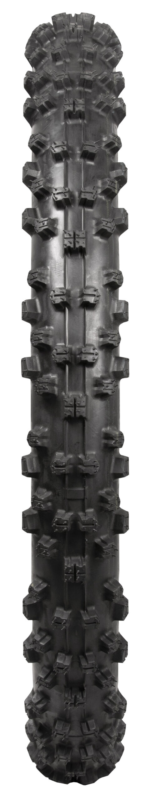 Il disegno del battistrada – con tasselli piccoli sull’anteriore e più grandi sul posteriore -elimina velocemente il fango migliorando l’avanzamento e fornendo al contempo una bassa resistenza al rotolamento apprezzabile soprattutto quando si percorrono tratti di strada asfaltata.