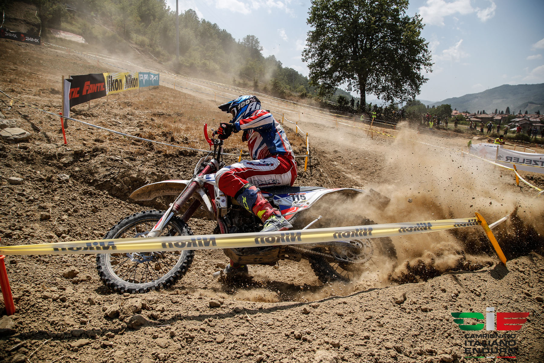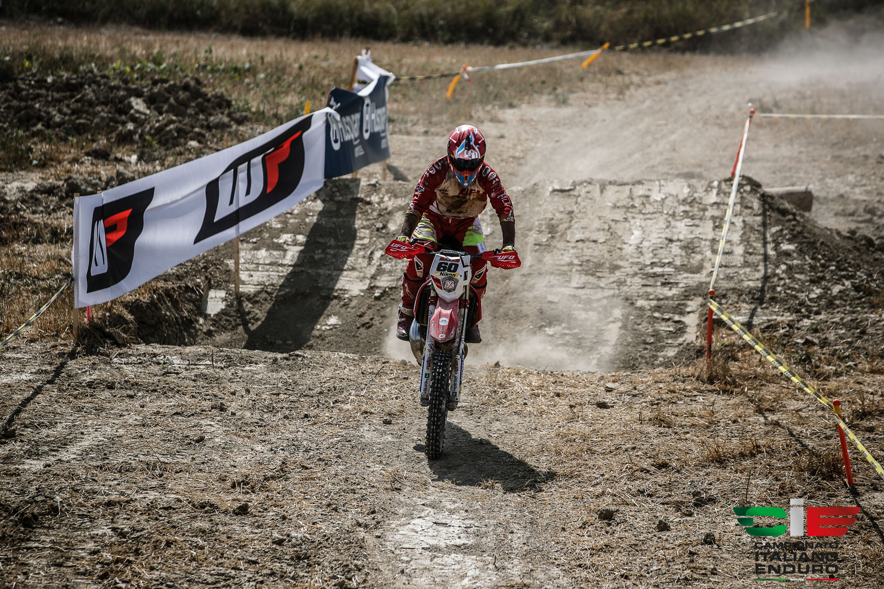 Tre vittorie arrivate in una giornata davvero non semplice, con il caldo e la polvere grandi protagonisti in questo 15 luglio. Il meteo e le condizioni del terreno hanno fatto da contorno a una gara di per sé molto impegnativa, con ben tre prove speciali a caratterizzare ognuno dei tre giri effettuati. Dopo lo start, avvenuto questa mattina alle ore 8.30 dal campo sportivo del paese marchigiano, i riders al via si sono diretti all’Enduro Test Just1, dislocato all’interno di un bosco. Terminate le fatiche della prova in linea, percorsa dai migliori in poco meno di nove minuti, i piloti si sono sfidati nell’Airoh Cross Test, valido altresì per l’omonimo trofeo vinto in questa giornata da Matteo Bresolin su Husqvarna, prima di recarsi presso l’Extreme Test, situata a ridosso del paddock e che ha richiamato a sé davvero molto pubblico, grazie anche ai suoi passaggi spettacolari ed impegnativi su trochi e pietraie.