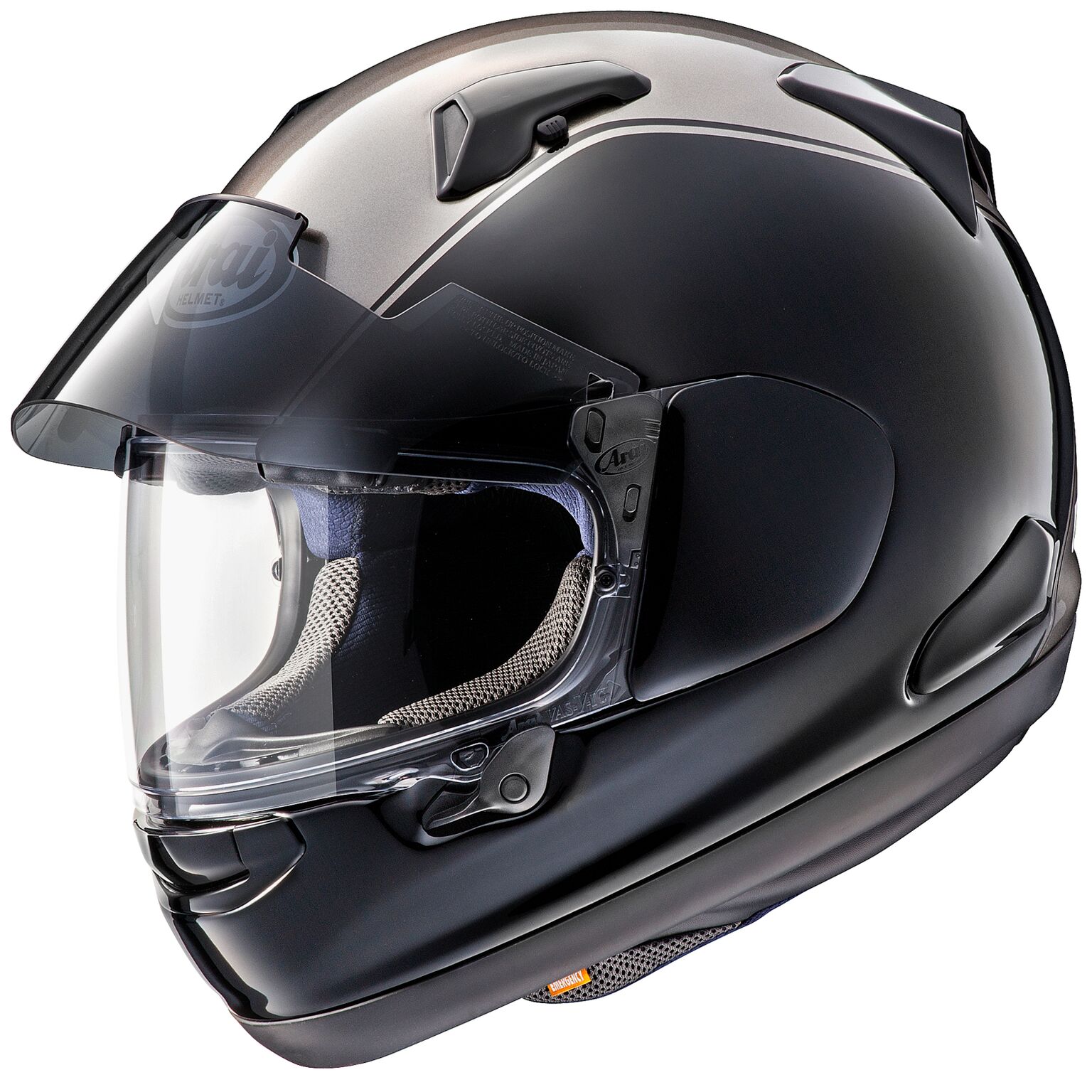 È caratterizzato dall’avanzata tecnologia del nuovo sistema visiera VAS, montato anche sul nuovo RX-7V, ma ha diffusori, prese d’aria e condotti integrati differenti. Questa calotta, la più resistente, liscia e rotonda possibile migliora la sicurezza del già elevato standard Arai, offre una calzata ad “ovale intermedio” e massimizza la capacità del casco di scivolare su eventuali ostacoli, caratteristica necessaria per garantire performance di assorbimento superiori in caso di impatti nel Mondo Reale.