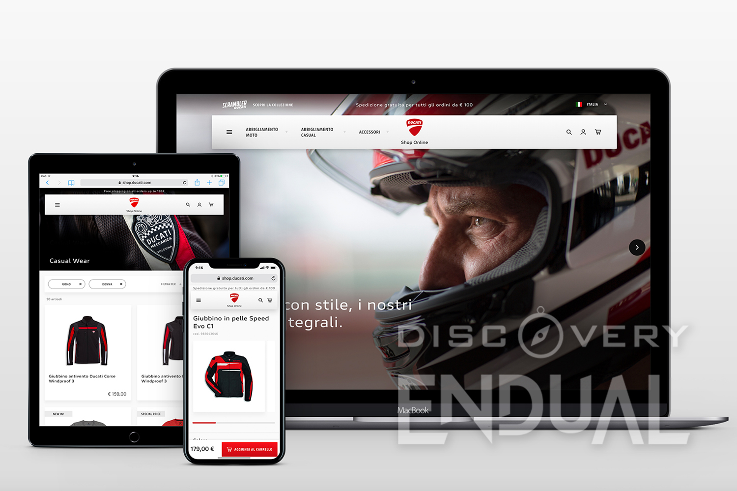 A seguito di una fase di analisi strategica condotta in modalità di co-design, il risultato è un eCommerce che, partendo dalla ridefinizione del customer journey degli appassionati e dei clienti Ducati, dà origine a una piattaforma integrata nell’intero universo e in continua evoluzione, che diventa strumento capace di costruire un’esperienza di eshopping tailor made, realmente modulata sulle caratteristiche dell’utente.