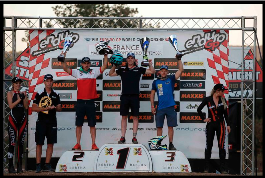 Il weekend francese ha quindi assistito ad una dimostrazione di forza di Steve Holcombe che, nel momento cruciale della stagione, si è fatto trovare pronto e decisivo come non mai. Ottima prova anche per Christophe Charlier nella classe E2 e nella Enduro GP. Il pilota corso ha portato a termine uno straordinario Day 2 salendo sul secondo gradino del podio nella classe E2 – a soli 25 centesimi dalla vittoria – e sfiorando il podio della Enduro GP.