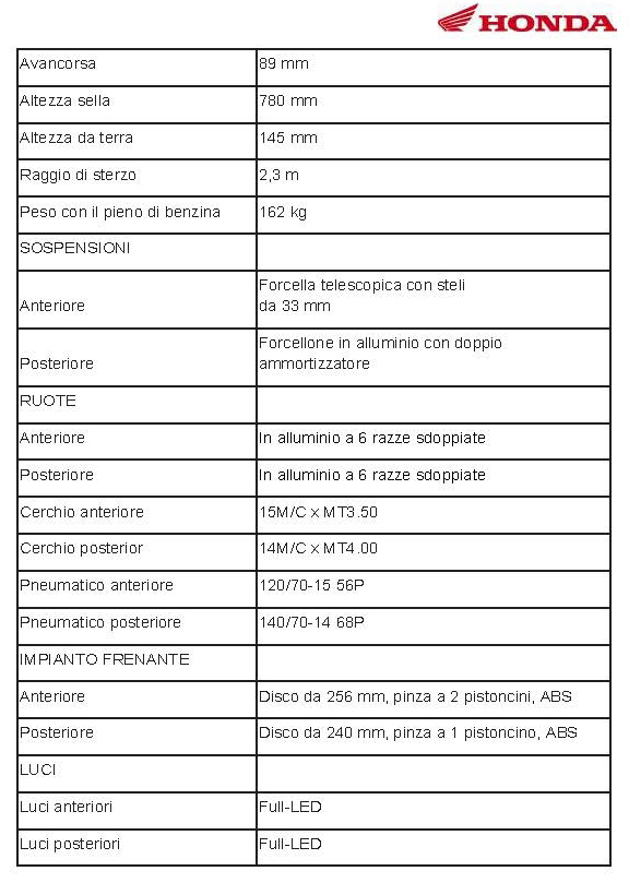 I cerchi in lega leggera a 6 razze sdoppiate sono bellissimi da vedere e garanti di ottima tenuta di strada. Sulla ruota anteriore da 15 pollici è montato uno pneumatico 120/70-15, mentre sulla ruota posteriore da 14 pollici è installato uno pneumatico 140/70-14. Ne risulta grande aderenza in curva e al tempo stesso ottimo comfort di marcia. Gli pneumatici di primo equipaggiamento sono gli eccellenti Michelin City Grip. Rassicurante anche l’impianto dei freni, composto da un grande disco anteriore da 256 mm con pinza a 2 pistoncini e dal disco posteriore da 240 mm, con pinza a singolo pistoncino. L’ABS a due canali è una garanzia di sicurezza su ogni fondo, in particolare quando piove o su strade sporche.