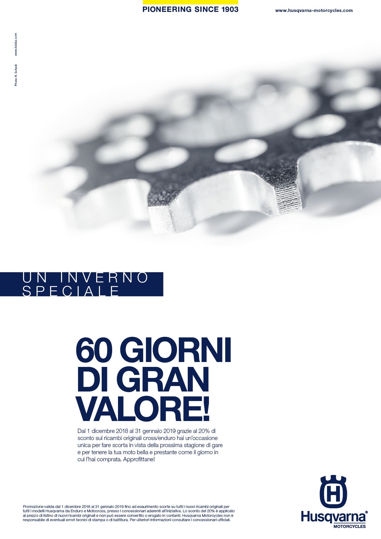 L’iniziativa “UN INVERNO SPECIALE”, valida per tutti i modelli Husqvarna sia da cross che da enduro, consente di acquistare ricambi originali Husqvarna Motorcycles con uno sconto del 20% sul prezzo di listino al pubblico, IVA inclusa.