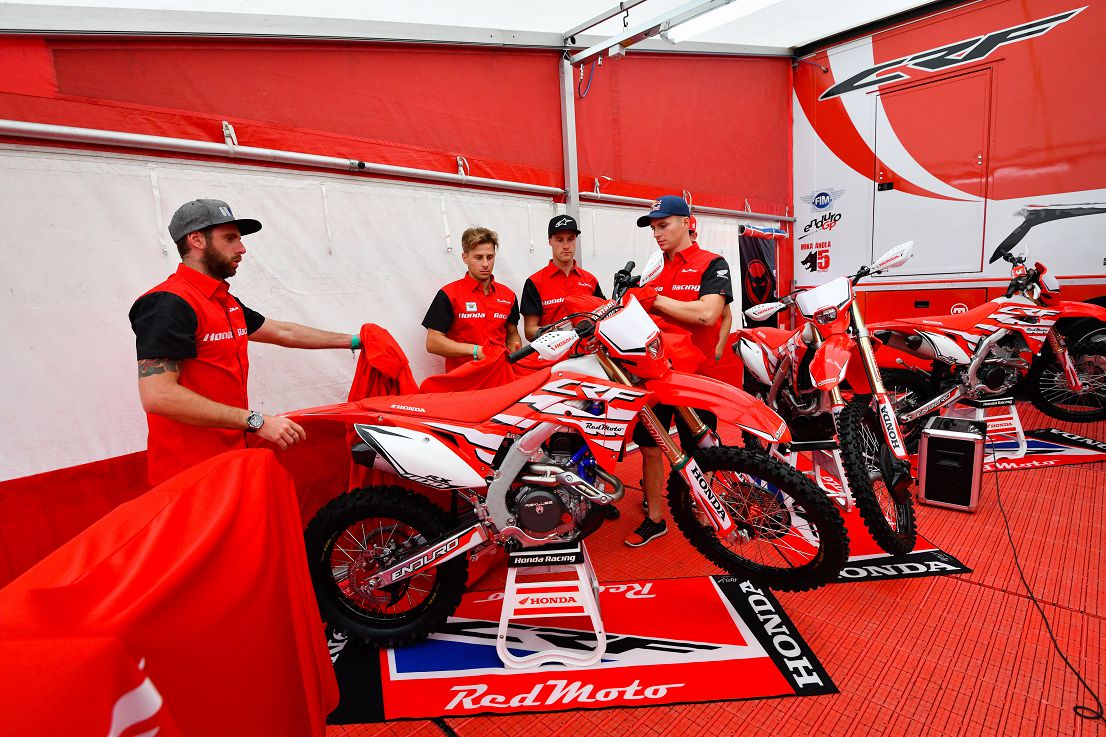Proprio prima dell’inizio del prologo di venerdì 31 agosto, lo staff RedMoto con la preziosa collaborazione dei piloti dell’Honda RedMoto World Enduro Team Davide Guarneri, Thomas Oldrati e Emanuele Facchetti, e con la presenza di Giacomo Redondi, ha svelato in anteprima assoluta le nuove CRF-RX MY 2019 che comprende le cilindrate 250, 300, 400 e 450 nella versione RX Enduro.