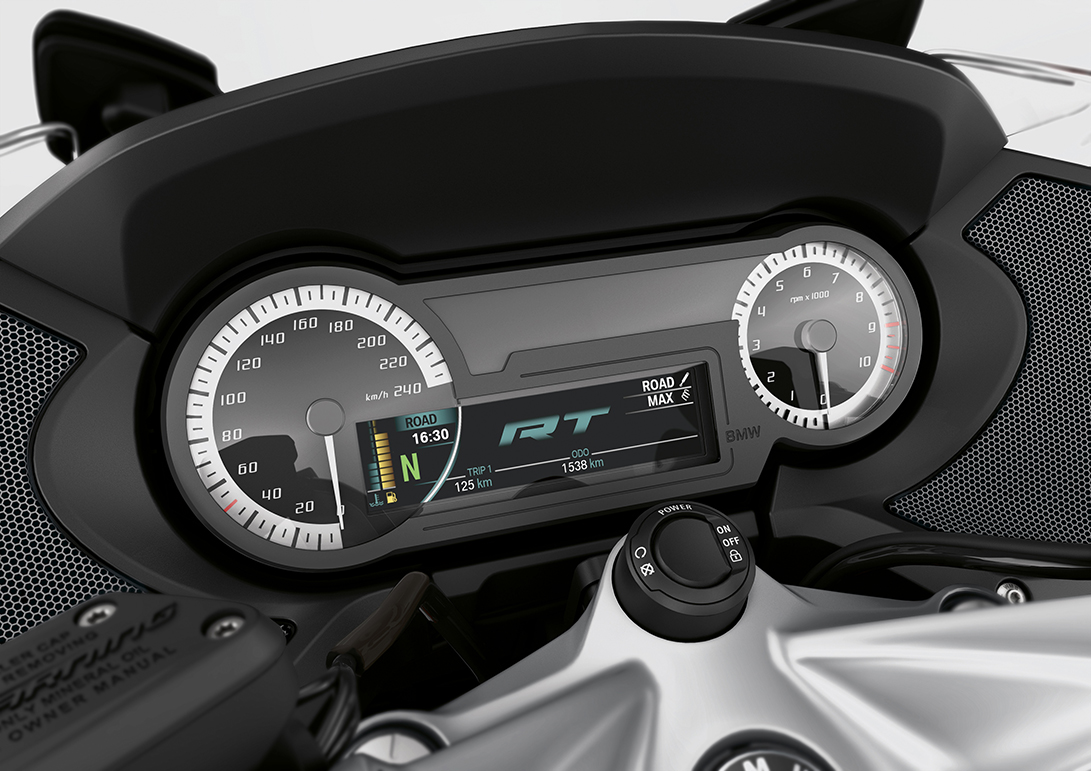 La nuova R 1250 GS dispone ora di serie dell’allestimento Connectivity con un display TFT a colori da 6,5 pollici. In combinazione con il multi-controller BMW Motorrad di serie, il pilota ha la possibilità di accedere in modo particolarmente veloce e confortevole alle funzioni della moto e di connettività. La R 1250 RT è dotata di un display TFT a colori da 5,7 pollici. Lo completano un tachimetro e un contagiri analogici.