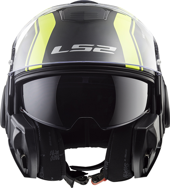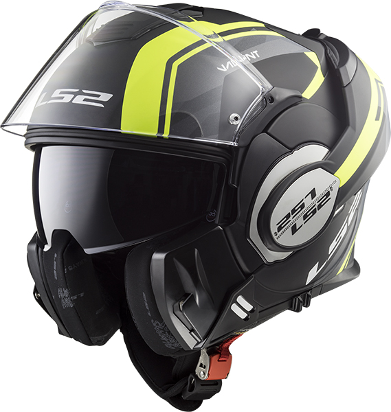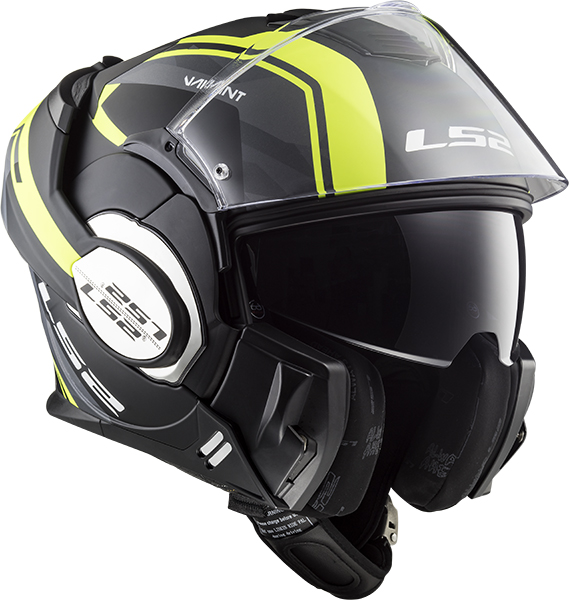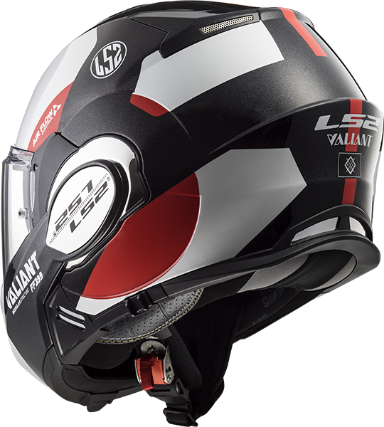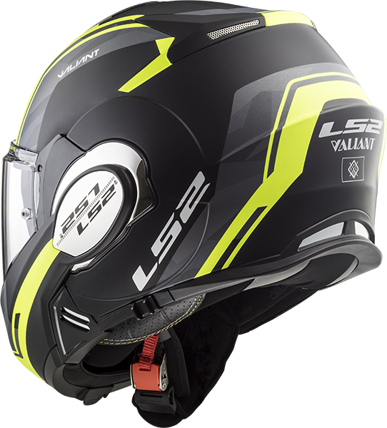 IL CASCO – La scelta del casco si è rivolta per questa edizione a VALIANT, il convertibile della collezione LS2 Urban Commuter caratterizzato da un design innovativo, espressione di un comfort eccellente e di un livello di protezione di superiore. VALIANT è stato scelto dai motociclisti del Giro d’Italia per le sue importanti caratteristiche, perfette per un utilizzo impegnativo come quello che sosterranno nel corso delle 21 tappe: un casco particolarmente versatile, adatto alla moto ma anche al maxi-scooter, perfetto per gli spostamenti cittadini ma eccezionale compagno di viaggio nei tratti di medio-lungo raggio e in autostrada. La sua calotta, in tre misure, è stampata in KPA (Kinetic Polymer Alloy), materiale eccezionalmente flessibile che rende il casco leggero e molto resistente. La sua forma particolarmente aerodinamica è studiata per inglobare le prese d’aria superiori e posteriori oltre all’innovativo sistema di movimento della mentoniera che, una volta sollevata, prosegue la sua corsa di 180° fino alla parte posteriore della calotta. La visiera, antigraffio e anti-UV, è realizzata con tecnologia 3D Optically Correct per evitare le distorsioni ottiche, è dotata di Pinlock 70 Max Vision -il più innovativo sistema anti-appannamento- e dell’esclusiva visierina parasole interna TSS (Twin Shield System) che consente una guida sicura in ogni condizione di visibilità. Gli interni sono estraibili e lavabili, con tessuti in micro fibra traspiranti e anallergici. Sicurezza e comfort sono garantiti anche dal cinturino in acciaio inforzato, con chiusura a sgancio rapido e regolazione micrometrica. VALIANT, omologato come casco open-face e come integrale (sigla PJ), è disponibile nelle taglie dalla XS alla 4XL.
