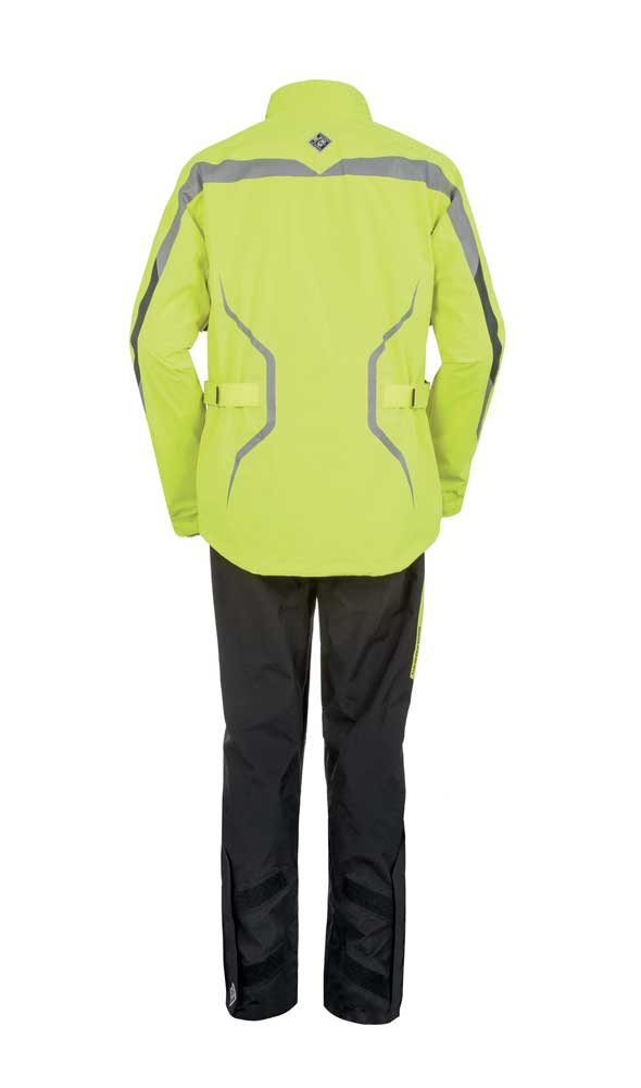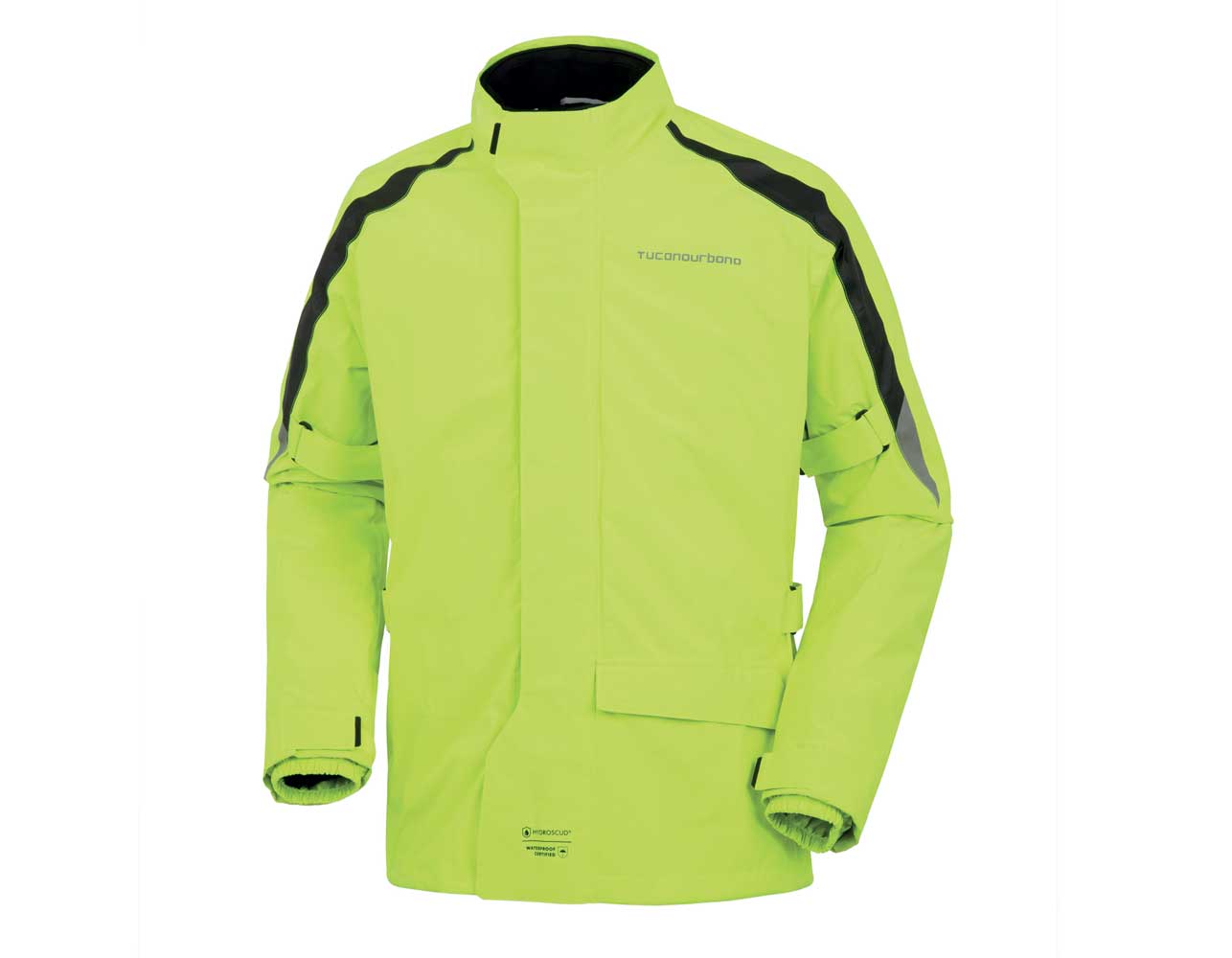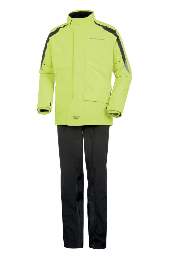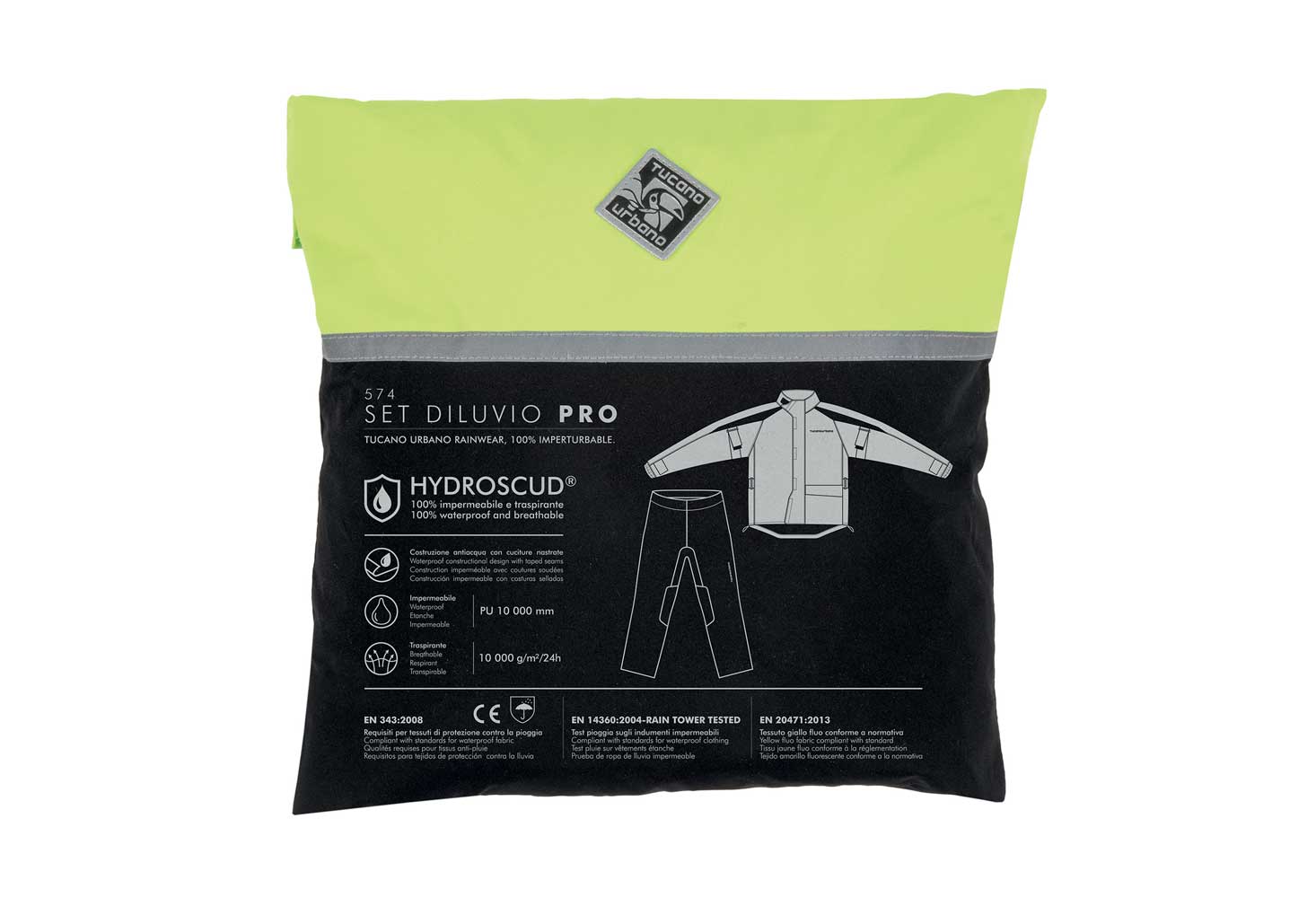 L’autunno scalda i motori, temporali in arrivo. Schierato in prima linea a coprire l’ormai prossima stagione delle piogge c’è già il SET DILUVIO PRO, un nuovo completo giacca e pantalone antipioggia, frutto della ricerca sempre più all’avanguardia sul fronte dell’impermeabilità, che si posiziona al vertice della gamma TUCANO URBANO. Pensato soprattutto per i lunghi viaggi on the road, il SET DILUVIO PRO si distingue per essere stato realizzato in un pregiato tessuto stretch, in grado di offrire il minimo svolazzamento, anche alle velocità più elevate. L’assoluta impermeabilità è garantita dal sistema registrato HYDROSCUD®, una costruzione esclusiva di TUCANO URBANO che si compone di una membrana interna 100 per cento impermeabile (10.000 mm), antivento e traspirante (10.000 gr/mq/24h), di cuciture nastrate, anche sul collo, e di una trappola antiacqua con doppia flap sulla cerniera centrale della giacca. Per preservare la tenuta delle nastrature è stata inoltre predisposta la costruzione a banda sul cavallo e sull’interno gamba, di norma le parti più soggette a usura. Così come è stato anche appositamente rinforzato il fondo interno del pantalone, spesso a contatto con il telaio della moto.