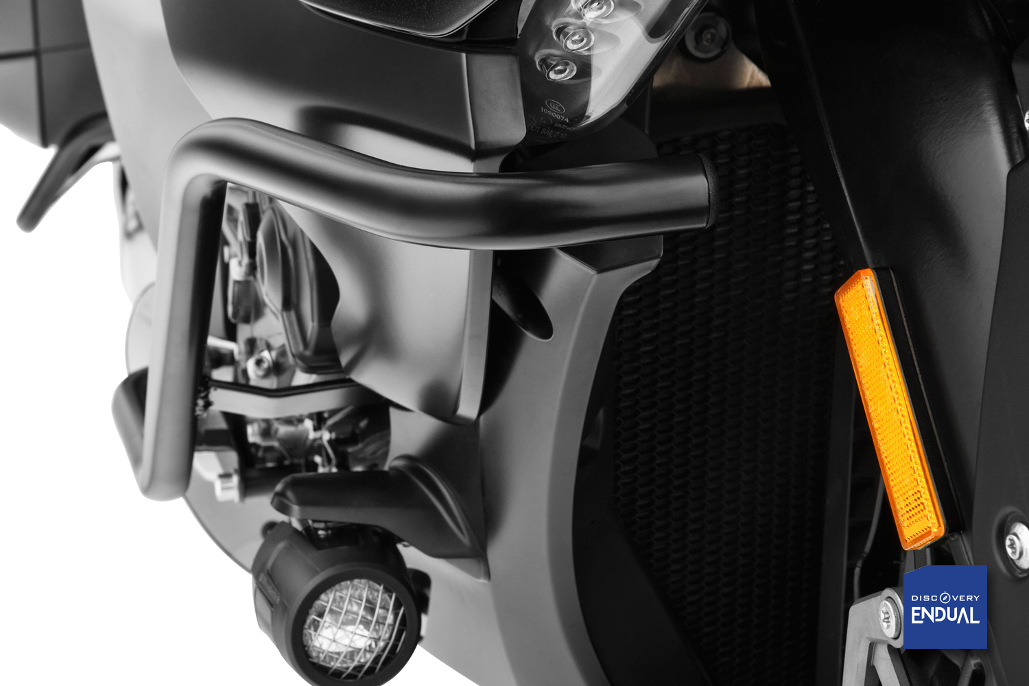 In caso di urto, tutte le forze coinvolte sono equamente distribuite dal tubo rotondo ricurvo. Senzaapportare modifiche, tutte le barre sono facilmente montabili sulla carenatura nei punti di attacco originali, garantendo il massimo spazio di manovra. Sono legali e privi di registrazione, Made in Germany e sono coperti da una garanzia di 5 anni.