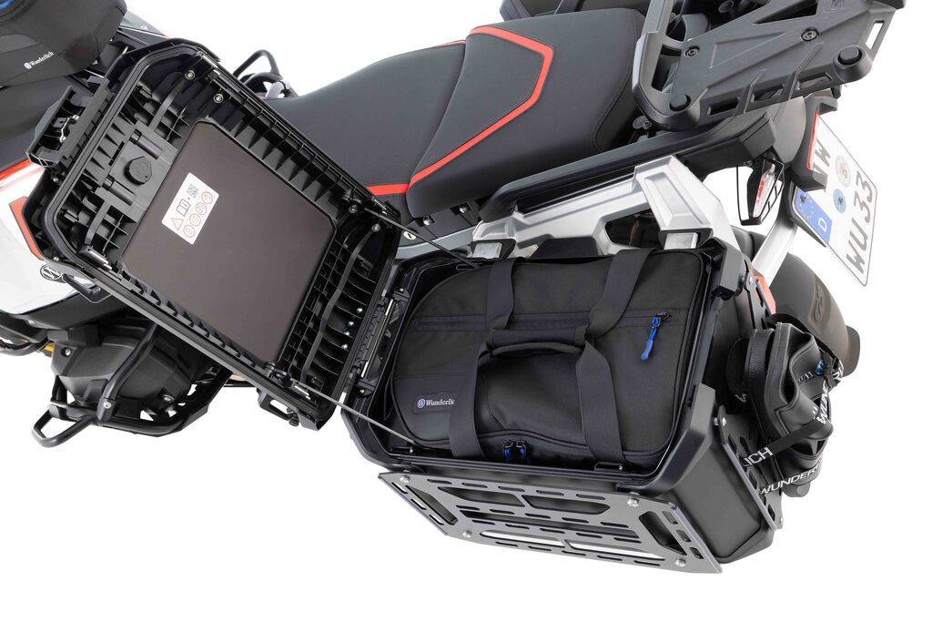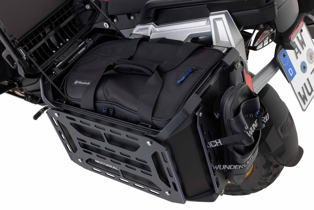 Wunderlich presenta le nuove borse interne Toploader dedicate alle valigie originali in alluminio della BMW R 1300 GS Adventure. Si tratta di un set progettato su misura per sfruttare al massimo il volume degli alloggiamenti laterali OEM, semplificare le operazioni di carico e scarico e rendere più confortevole ogni spostamento, dai trasferimenti urbani ai lunghi viaggi. L’apertura superiore è ampia e comoda grazie alle due zip contrapposte. L’apertura dall’alto, le tasche supplementari e la struttura autoportante le rendono una soluzione estremamente pratica per organizzare in modo ordinato il contenuto, mantenendo sempre un accesso rapido all’attrezzatura, senza la necessità di doverle rimuovere dalla valigia in alluminio. Un prodotto sviluppato con la cura e la qualità tipiche di Wunderlich.