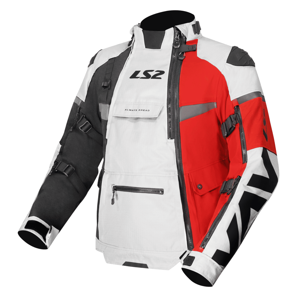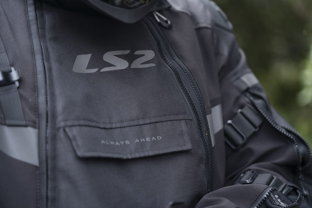 In termini di sicurezza, la giacca integra protezioni omologate su spalle e gomiti, queste ultime regolabili in altezza per ottimizzare vestibilità ed efficacia in caso di impatto. È inoltre compatibile con protezioni torace e schiena LS2.