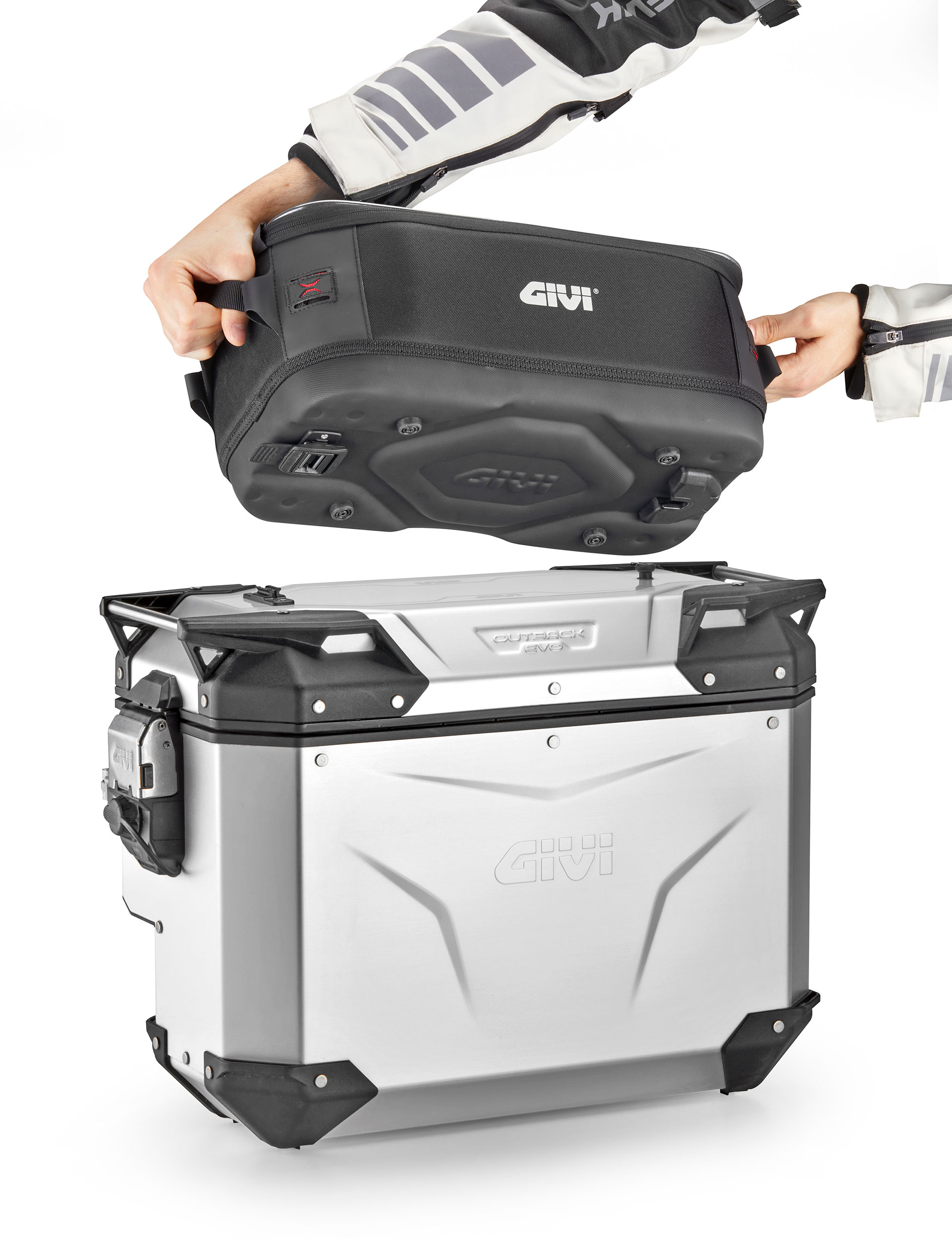 Si chiama XL10 e nasce per integrarsi perfettamente alle valigie laterali in alluminio con apertura dall’alto. Il montaggio è semplice. La borsa si ancora al coperchio mediante un kit di aggancio dedicato (incluso) e una dima di foratura; un magnete ne facilita il posizionamento e la centratura.